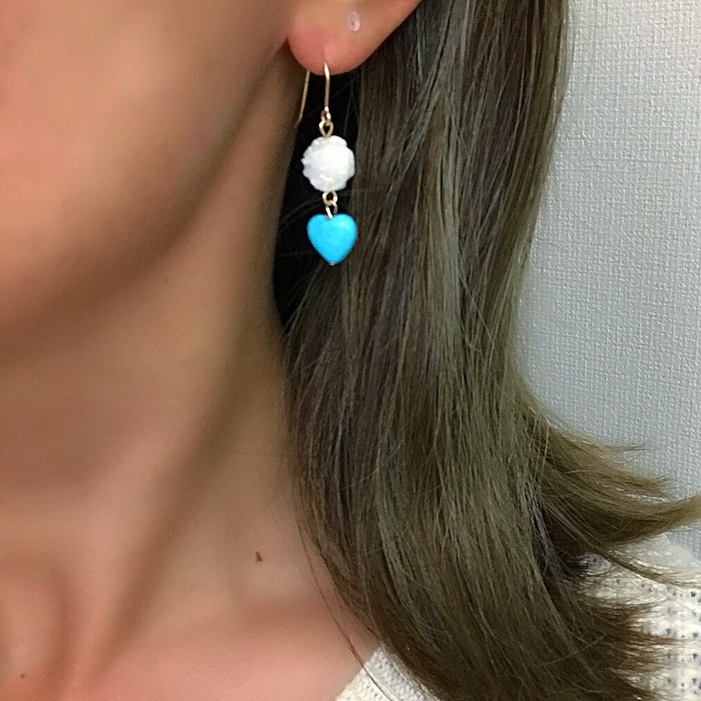 ドゥルージー表面の結晶キラキラ感とターコイズが可愛いピアスです。